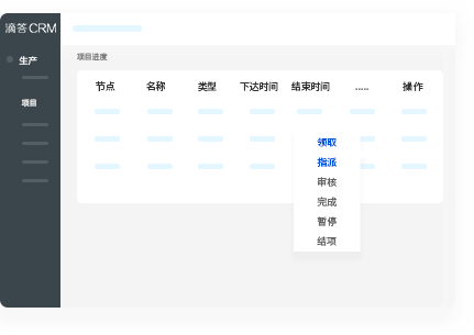 滴答CRM打通多個系統,集成CRM,產品生產管理,回款開票管理,售后于一體 與互聯網企業業務流程高度貼切,企業效率大幅提升,客戶資料完整沉淀