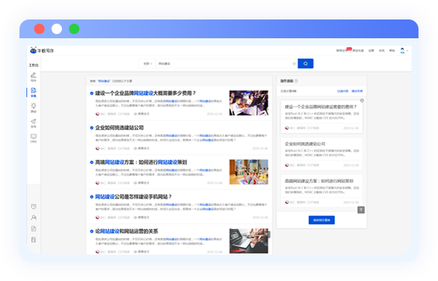 AI算法將文章內(nèi)容搜索結(jié)果進(jìn)行整合到一個列表展示給您,支持多種篩選條件,內(nèi)容批量處理,提升文章寫作效率